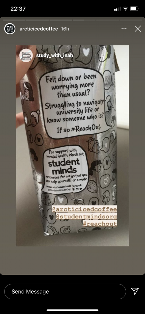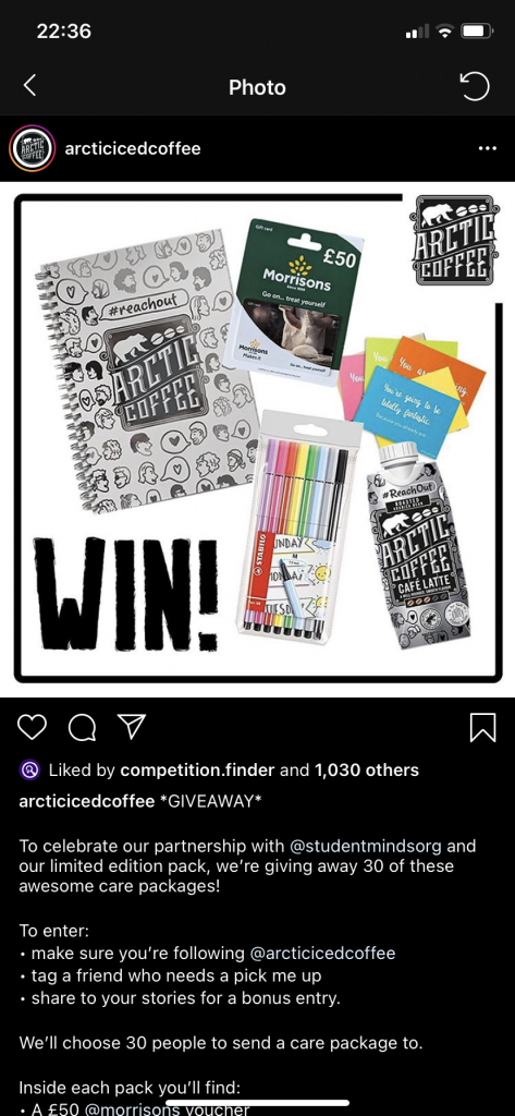 Some nice activity from Arctic Iced coffee – they’re supporting Student Minds (the UK’s student mental health charity) with: